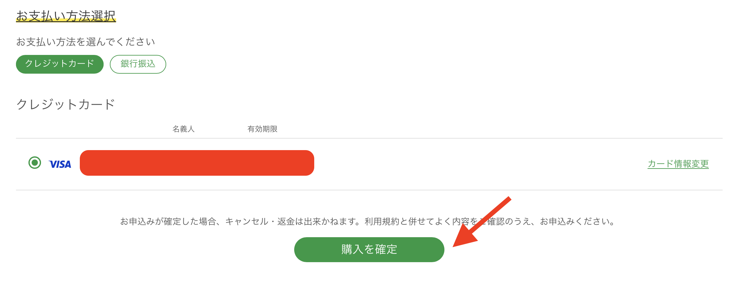 「購入を確定」をクリック後に、