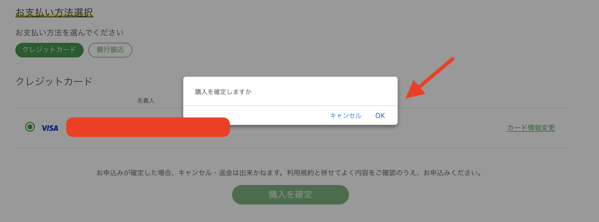 再度「購入を確定しますか?」の表示がされるようになっています。