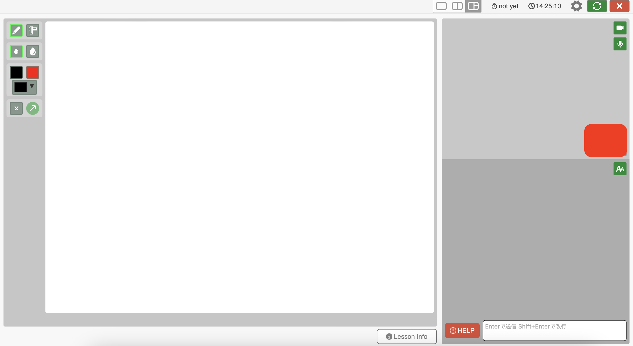 先生側の動画は右上に、自分側は右端(赤塗りつぶし箇所)に表示されます。